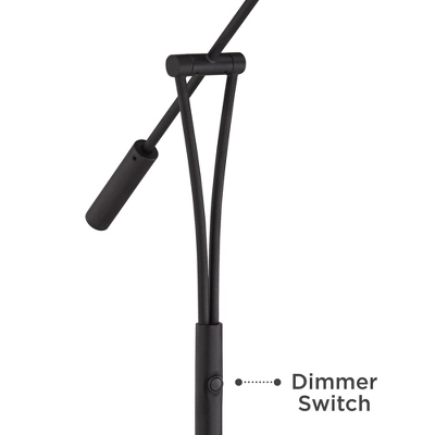 These energy-efficient LED floor lamps are perfect for contemporary or transitional spaces. They each come in a sleek black finish metal frame with adjustable arm. This design has a push dimmer switch located on the pole. Convenient and versatile, these floor lamps are a great addition to a study or sitting area.