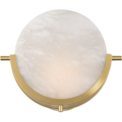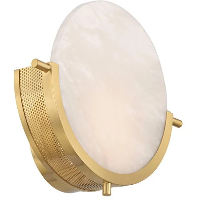 Maximize style while saving on space with the Barranco pocket wall sconce from the 360 Lighting brand. This rounded design features a warm gold finish for a splash of vibrant color, matched with a circular shade of real, natural alabaster. Rated for indoor use, this pocket sconce will prove to be a welcome addition to any room in your modern style home. An integrated LED module provides energy-efficient illumination.