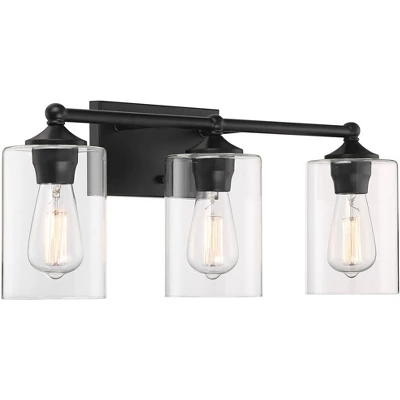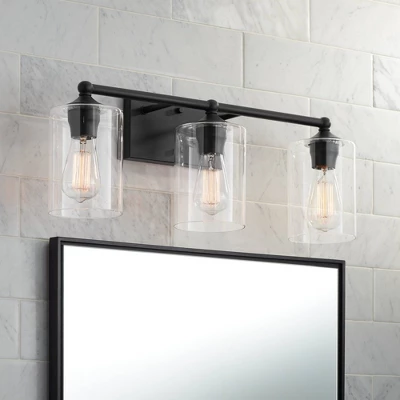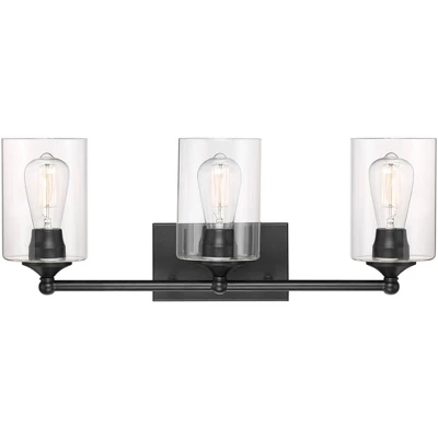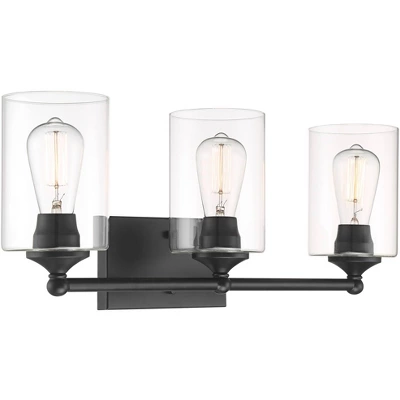 Update your bathroom with the refined simplicity of this three-light bath light fixture from the Bellings collection by 360 Lighting. The black finish metal frame consists of a slender rod attached to rectangular backplate, which supports three clear glass shades in a cylinder shape. Perfect for contemporary or transitional style settings. Horizontal installation only.