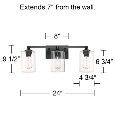 - 24″ wide x 9 1/2″ high. Extends 7″ from the wall. Each glass is 6 3/4″ high x 4 3/4″ wide. Weighs 5.19 lbs.