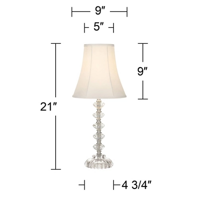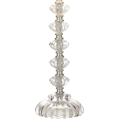 An elegant table lamp with a bohemian inspired style. Clear stacked glass detailing add a chic touch to the base. While an off-white lamp shade will complement any style decor.