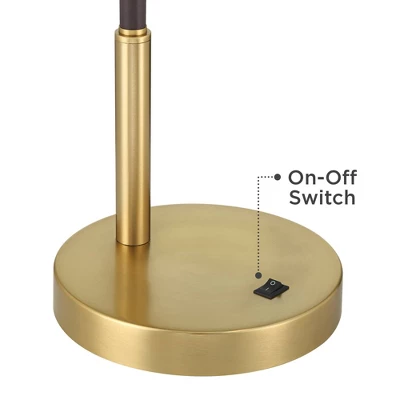 Traditional design meets a retro Mid-Century modern aesthetic with this functional desk lamp in warm brass with elegant leather trim. The shade features a downward-facing asymmetrical shape and can be adjusted in multiple directions for focused lighting. Handy USB ports allow you to charge smartphones and other electronic devices whether or not the light is turned on.