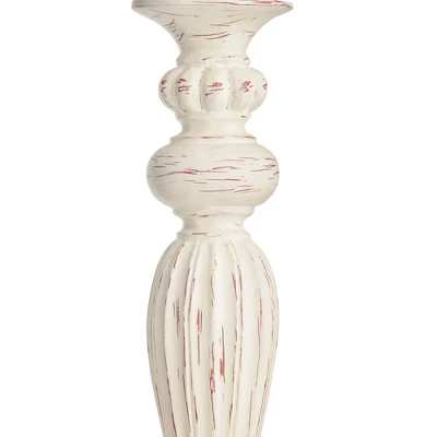 - Distressed antique white finish with burgundy undertones. Cast resin and metal construction.