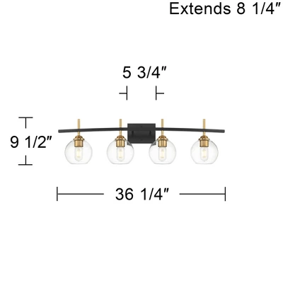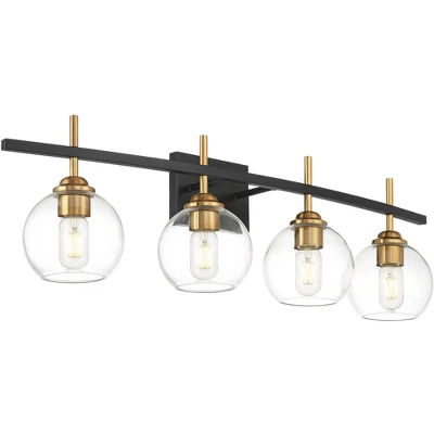 - Mixed metals look in black and gold finishes. Metal construction. Clear glass globes allow the bulbs to be seen.