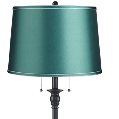 Create the living space of your dreams with the Dyna floor lamp, from the 360 Lighting brand. Perfect for homes blending contemporary and industrial styles, this floor lamp comes with a soft teal fabric drum shade with silver lining and trim. Twin pull-chains easily operate two bulbs, bringing welcome illumination to your home.