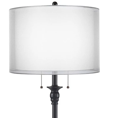 Create the living space of your dreams with the Dyna floor lamp, from the 360 Lighting brand. Perfect for homes blending contemporary and industrial styles, this floor lamp comes with a double layer polyester drum shade, featuring a sheer silver outer layer and a white inner layer. Twin pull-chains easily operate two bulbs, bringing welcome illumination to your home.