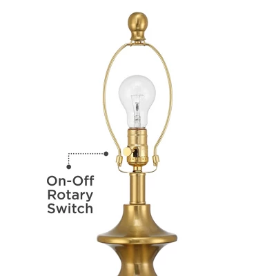 - Gold finish metal lamp base.