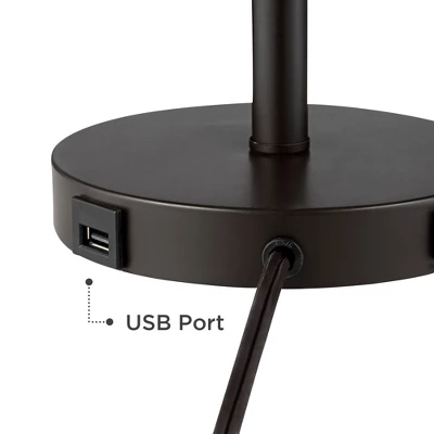 Extra features enhance this set of two bronze accent USB outlet table lamps. Charge your phone with these stylish and functional accent lamps, each offering a USB port and plug in its base. The round base and body impress with a bronze finish. A pull switch adds another convenient element to each lamp.