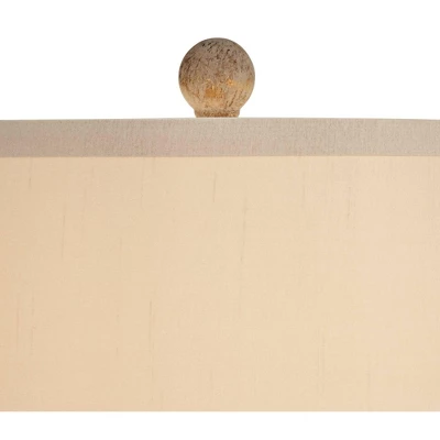 The lovely lattice detail in the lamp body is adorned with a gold wash finish that allows for a faux distressed look in this column table lamp set. The elegant look is topped with a light-colored lamp shade. With an on-off switch on the socket to complete the look. From the 360 Lighting collection of table lamps.