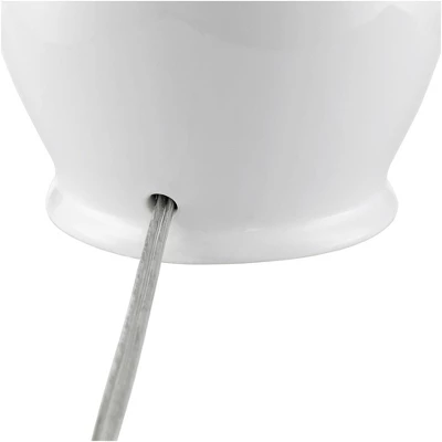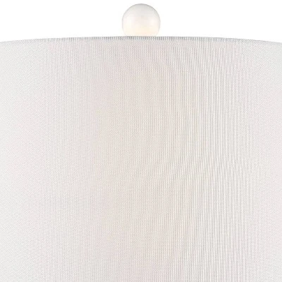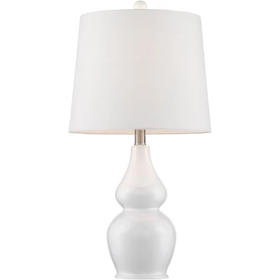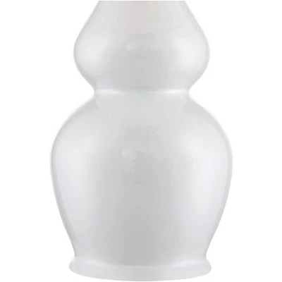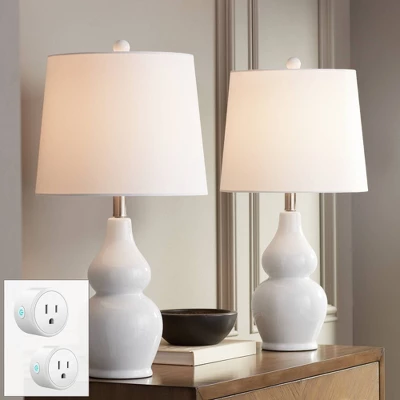 Embellish charming vintage inspired decor with the smooth gourd silhouettes of a set of two Mid-Century Modern table lamps. The lamps include smart sockets the enable voice and app control, and are designed by the 360 Lighting brand. Chic white finish highlights smooth ceramic construction and each lamp is topped with a tapered drum shade in crisp white for true illumination in your living room or home office.