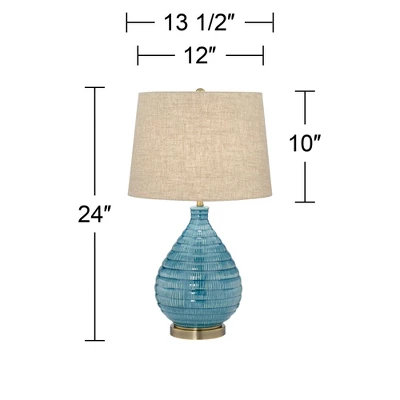 - Blue lamp color inspired by contemporary design and the coastal, nautical lifestyle. Hand-applied glaze may differ in color and pattern.