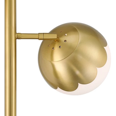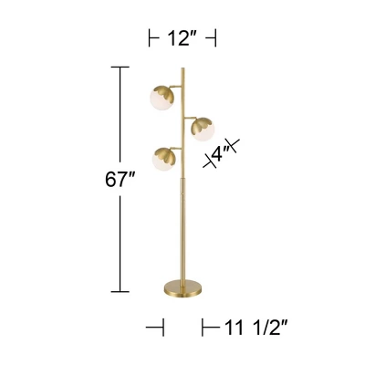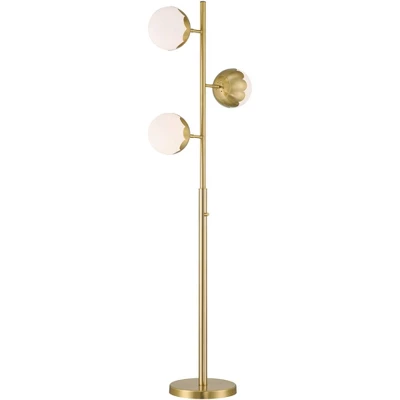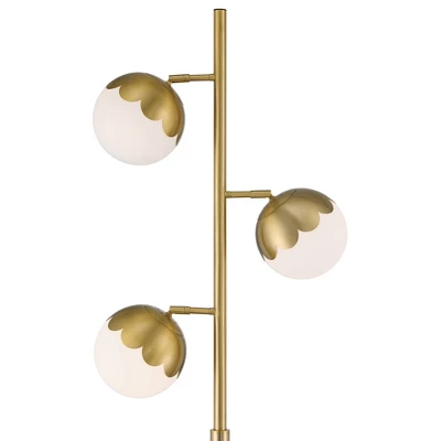 Add bright and modern to your living spaces with this three light floor lamp. From the 360 Lighting brand, the tree-style floor lamp has three adjustable globe lights set on a slender antique brass finish pole.