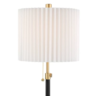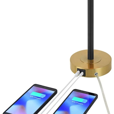 From the 360 Lighting brand, the Lenore set of table lamps offers chic, cosmopolitan style for your decor. Each lamp features an adjustable height base and pole done in a mixed metals finish. The black and gold of the base contrasts nicely with the crisp white fabric drum shade on top. In each base is a built-in USB charge port so you can power phones and other electronics. Perfect for use in a living room, bedroom, or home office.