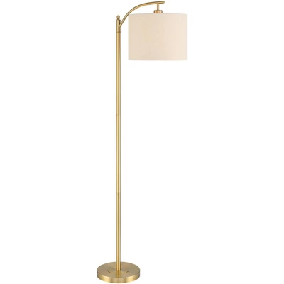The updated contemporary style of this floor lamp set is sure to add simple elegance to your living spaces. From the 360 Lighting brand, the lamps come with a warm gold finish and a linen blend drum shade. Use the pair of lamps near your favorite reading chairs or behind a sectional sofa.