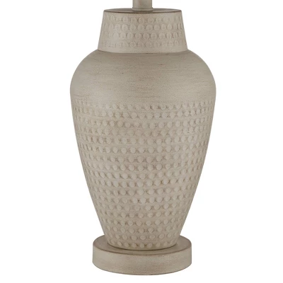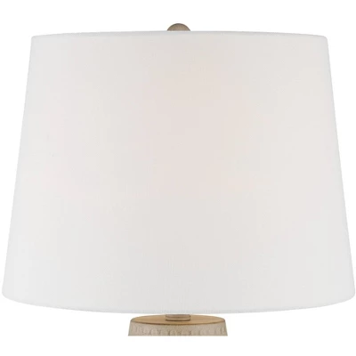 Versatile yet beautiful, the design of this set of two metal table lamps from the 360 Lighting brand boasts a beautiful vase silhouette. Hammered metal is coated with a neutral beige finish and each lamp is elegantly topped with a white linen shade. Choose this classic design in lamps as a great way to add lighting and style to a deserving tabletop.