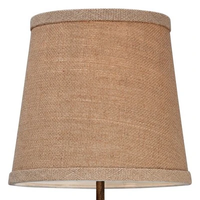 - Farmhouse crackle bronze-brown two-tone finish. Natural burlap hardback shade.