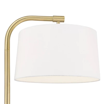From the 360 Lighting collection, the Serra floor lamp offers streamlined and luxury style for your home. Inspired by Deco and modern designs, the set of 2 lamps has a classic arc profile with an offset shade. The metal base, pole, and arm all come in a warm gold finish. A white linen fabric lamp shade provides diffused illumination ideal for reading or general room lighting. A convenient step foot-switch controls the on-off function and gives you easy lighting control.