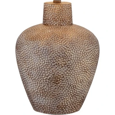 - Hammered texture in a brown leaf finish. Lightweight resin construction. Off-white shade with decorative ball finial. 8-foot long cord.