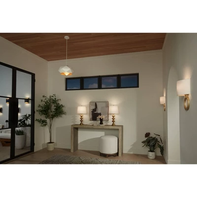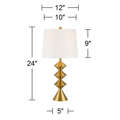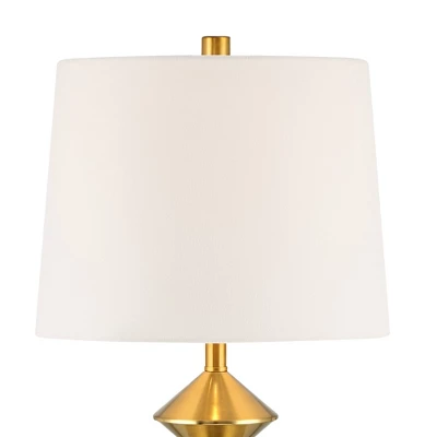 Get modern with these eye-catching table lamps from the 360 Lighting brand. The bases were inspired by Mid-Century and modern design and come in a gleaming gold finish with a stacked diamond profile. Up top are tapered white fabric shades to complete the fabulous look.