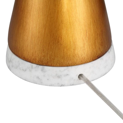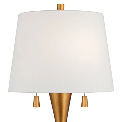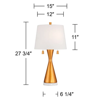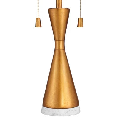 Elegantly designed by 360 Lighting, this modern table lamp provides a bright update for a living area or bedroom. The lamp base comes in a beautiful gold leaf finish with a white marble accent at the very bottom. Up top is a white fabric tapered lamp shade and double pull chains that make it easy to control the light output.