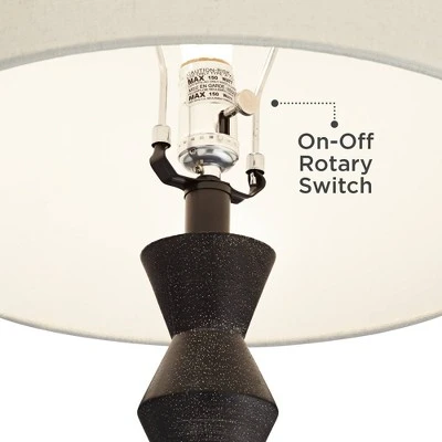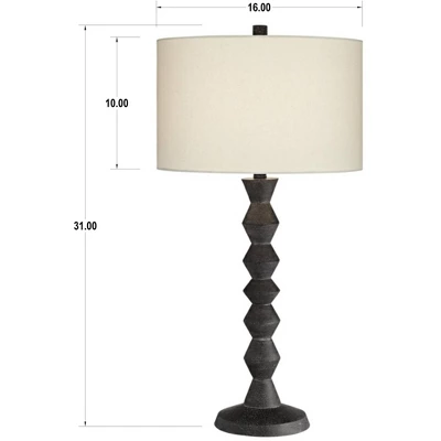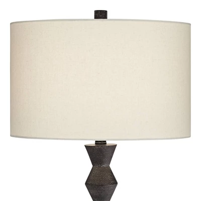 Brighten up with new style from this rustic modern lamp. From the 360 Lighting brand, the design has a faceted, geometric-shaped base that comes in a black finish with gray-wash detailing. Up top is a white color linen-cotton blend drum lamp shade that provides a contemporary finishing touch.
