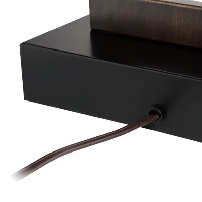 Clean lines form a geometric silhouette for modern emphasis, transforming a contemporary room into a haven for crisp aesthetics. This set of two modern metal table lamps offers a strikingly bold look perfect for illuminating a living room or bedroom. From the Todd collection by 360 Lighting, each lamp employs minimalism to achieve sophistication with a black finish pedestal and bronze finish open base. Rectangular oatmeal fabric shades provide perfect contrast, and built-in 2-amp USB ports join an electrical outlet to make each lamp a de facto charging station.