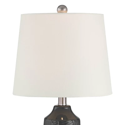 From the 360 Lighting brand, the Unity table lamps offer a quick and easy update for your lighting decor. Each lamp has a black finish ceramic base that has a textured decorative pattern. Brushed nickel finish necks and metal accents provide an accent to the ceramic, and each is topped by a white fabric lamp shade with a tapered profile. The lamps have 3-way sockets, so you can use 3-way bulbs for easy lighting control.