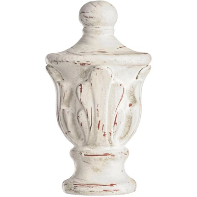 - Antique white finish with burgundy finish undertones. Cast resin and metal construction.