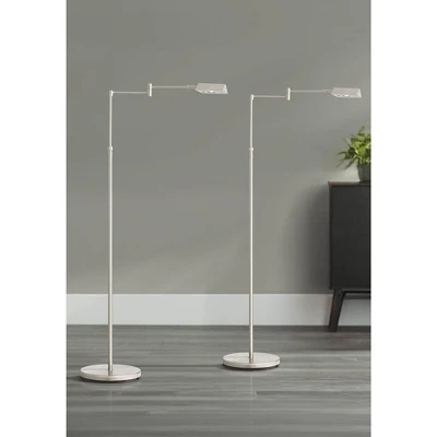 This set of two energy-efficient LED floor lamps comes with convenient features for your modern space. An adjustable swing arm allows you to change the height and direction of lighting, making this desk lamp a great choice for task lighting purposes, and the push dimmer switch allows for easy operation. The result are modern floor lamps that are great for reading, writing, studying, and other tasks.